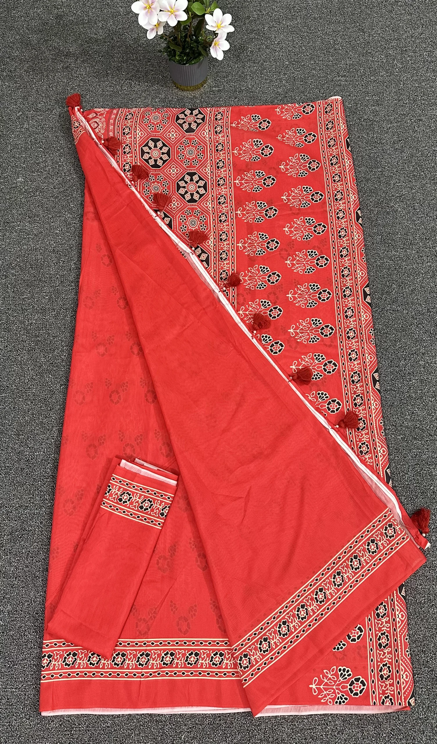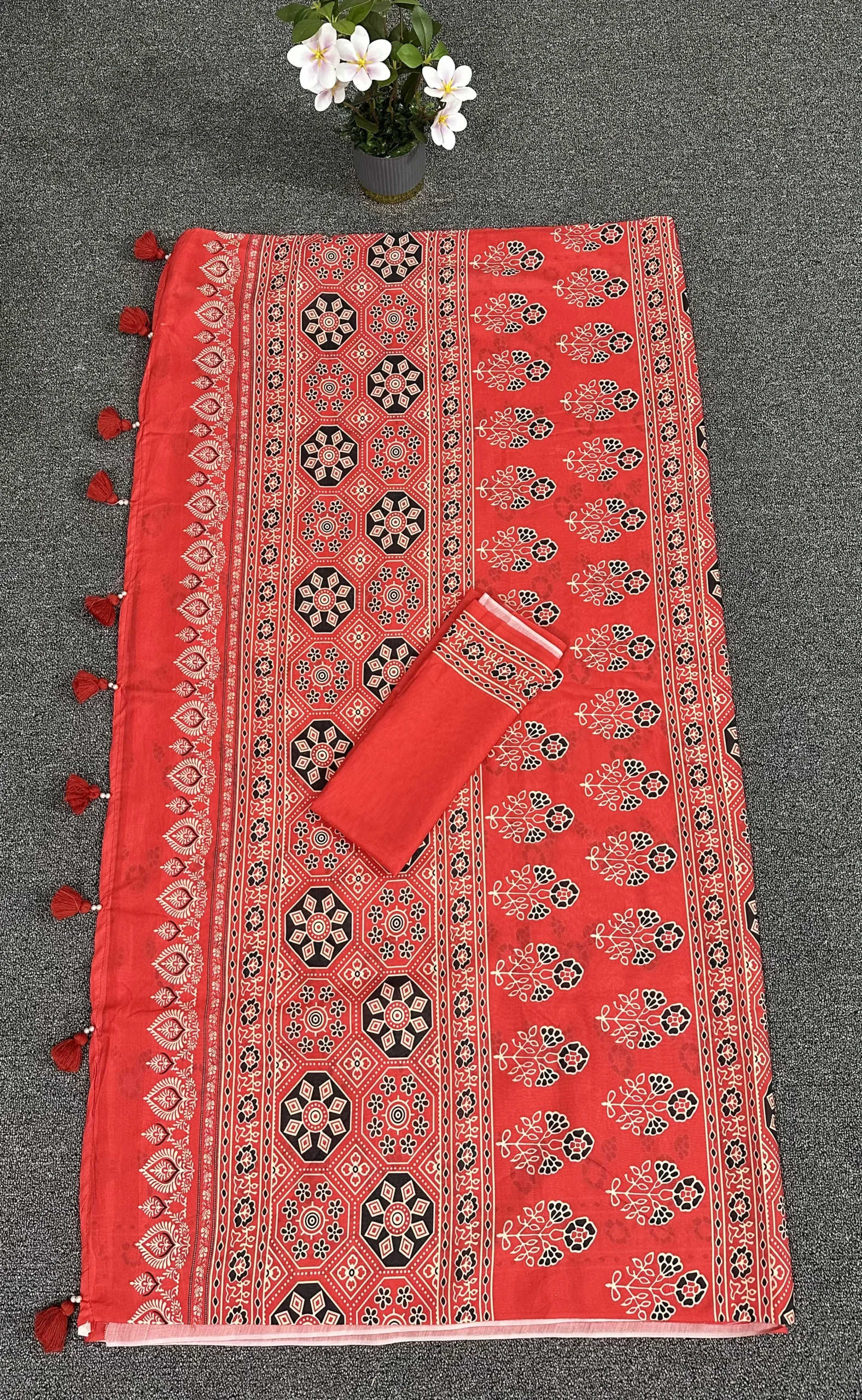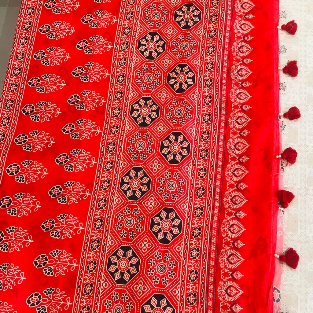 সাথে ম্যাচিং ১ গজ ব্লাউজ পিস।